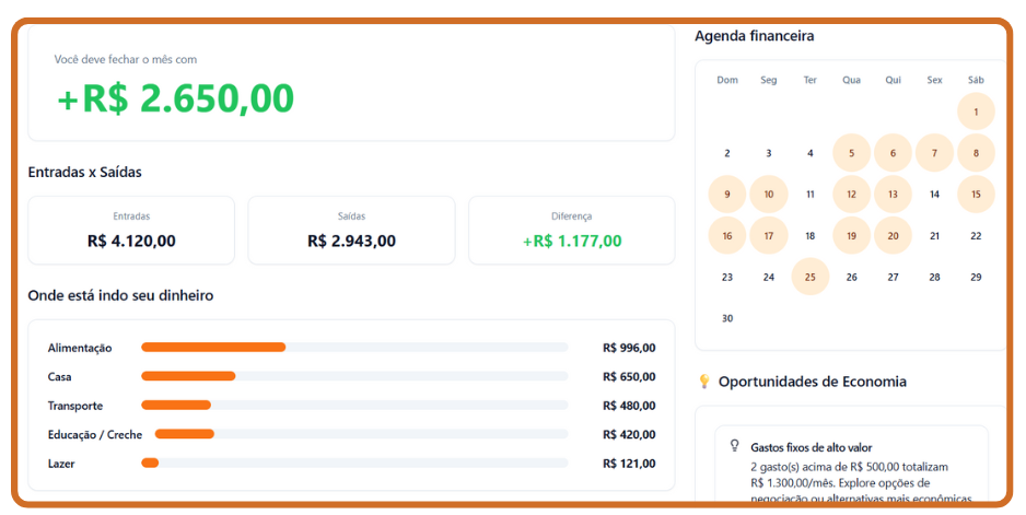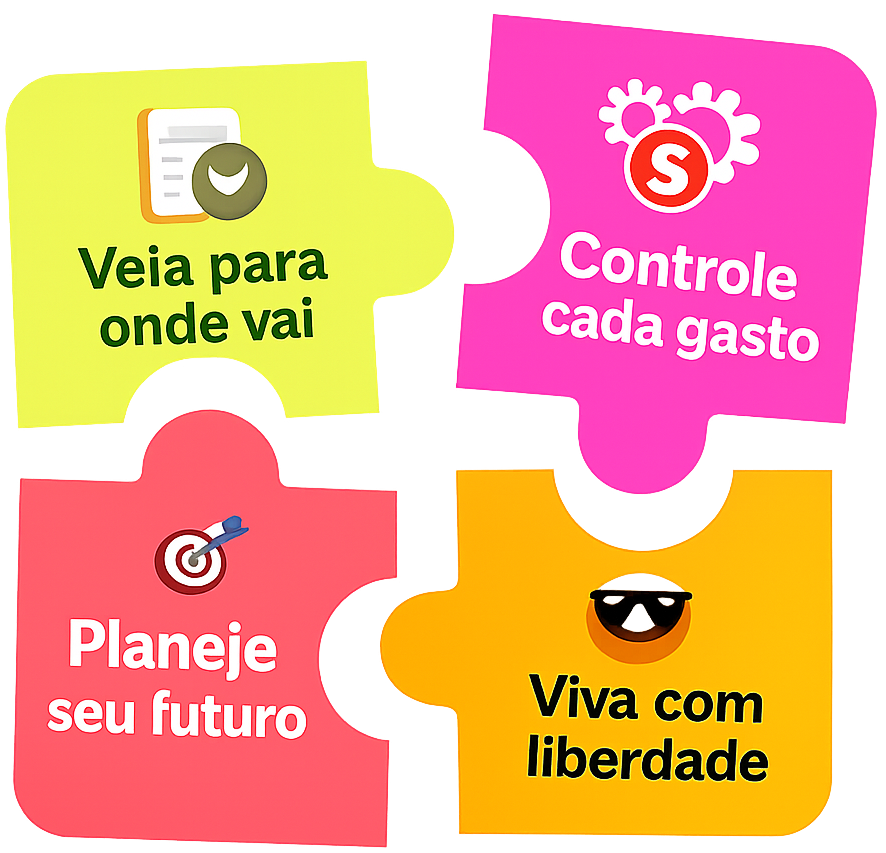 Em poucos minutos, você assume o controle das suas finanças, para de perder dinheiro sem perceber e passa a enxergar exatamente para onde cada centavo vai —