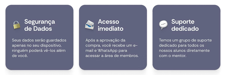 Após a confirmação do pagamento, você recebe o acesso imediatamente por e-mail.