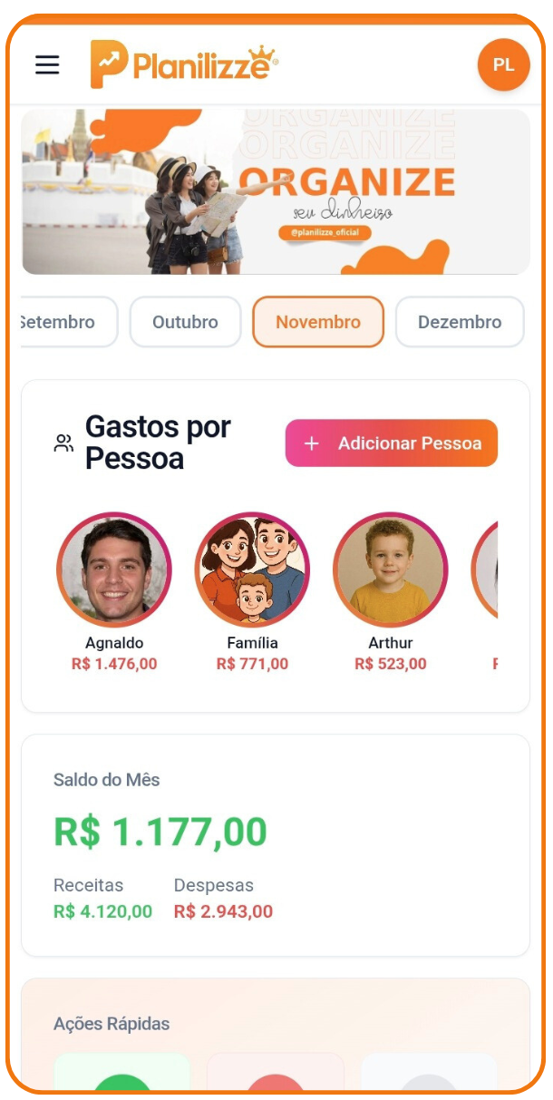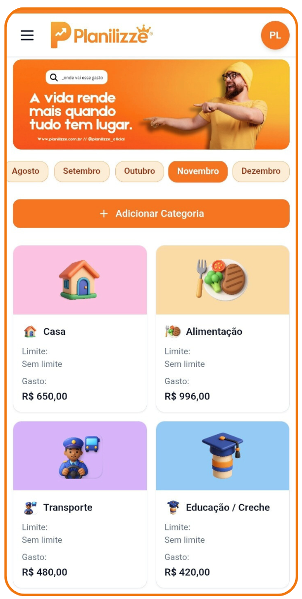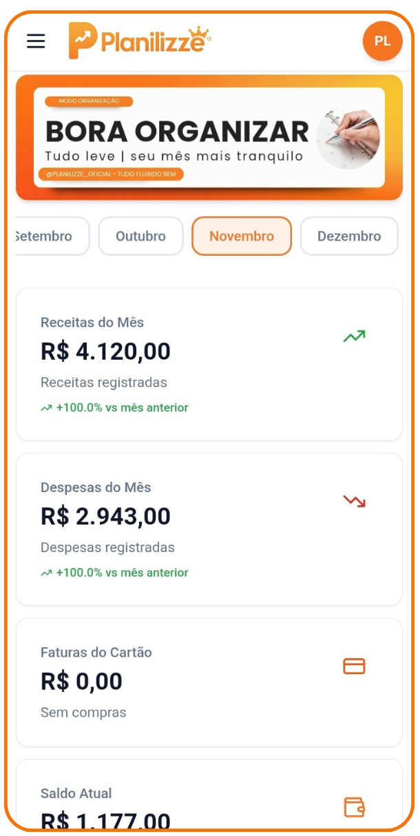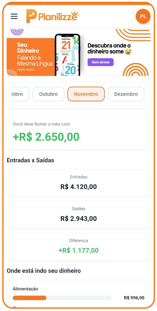 Com o Planilizze, você acompanha seus gastos em tempo real
