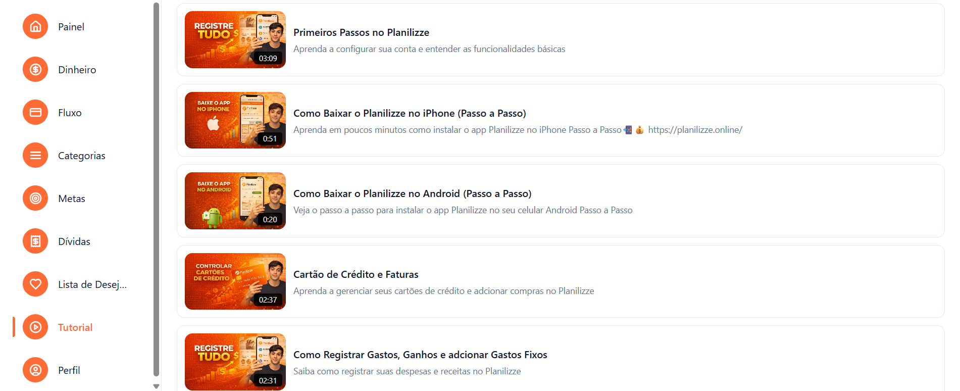 Dentro do app você encontra tutoriais simples e objetivos, mostrando passo a passo como usar cada função.
